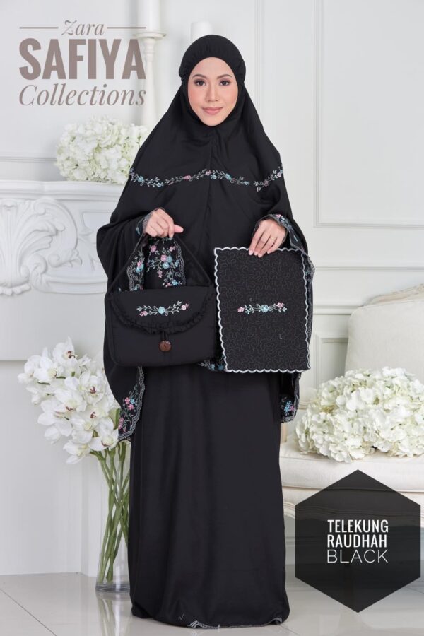 – Sulam dibahagian bawah dan keliling dada telekung.